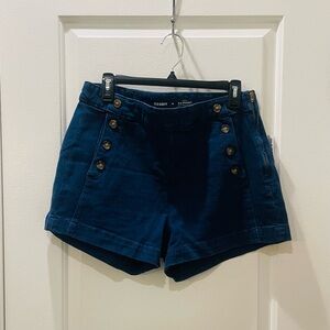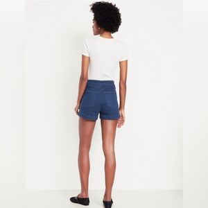 NWT…Stylish navy blue women's shorts from Old Navy are perfect for casual outings. Comfortable and chic design. Features button detail at each hip and a side left zipper. Color: Dark Wash