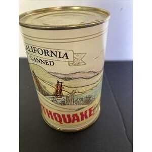 Fun and unique vintage 1991 "Canned Earthquake" souvenir from Dynamo Co., San Francisco, California. A classic novelty collectible created after the famous California quakes. This humorous can typically "shakes" when activated—this one has been tested and works (adjust if needed).