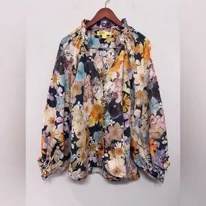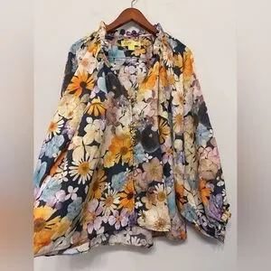 ANTHROPOLOGIE Maeve Moxy Collective Blouse Button Up Watercolor Floral Linen 1X