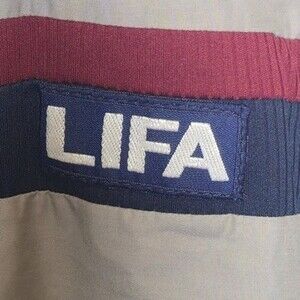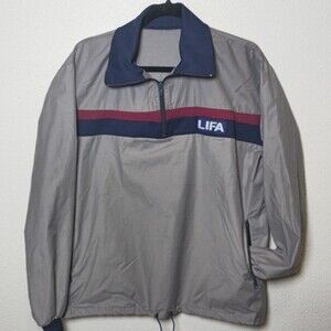Authentic vintage Helly-Hansen LIFA Super-Blend pullover jacket featuring classic 1990s color-block styling. Made in the USA with a durable nylon, polyester, and cotton blend. Lightweight shell design with quarter-zip front, ribbed collar, side zip pocket, and adjustable drawcord hem. Iconic LIFA logo across the chest.