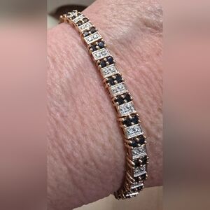 NATURAL BLUE SAPPHIRE BRACELET 14K GOLD OVER STERLING 925 | 8 INCHES