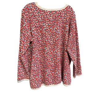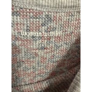 Woman Within Floral Waffle Knit Thermal Top Red Blue Gray Size 1X 22/24 Cozycore