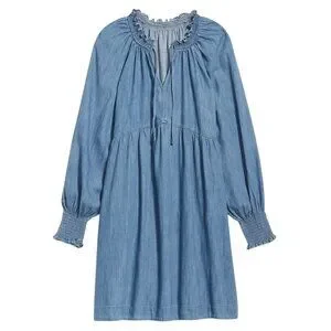 Puff Sleeve Jean Denim Mini Poet Swing Dress