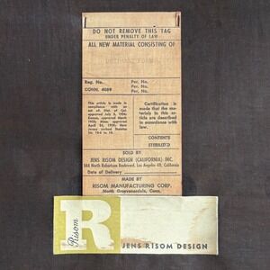 Offered is a matched pair of vintage Jens Risom lounge chairs, model C-140, produced by Risom Manufacturing Corp. and sold through Jens Risom Design (California) Inc., confirmed by original manufacturer's labels beneath the seats. These chairs date to the 1960-1962 era, and exemplify Risom's refined Danish-modern aesthetic, featuring sculptural angular arms, architectural lines, and exceptional craftsmanship.
