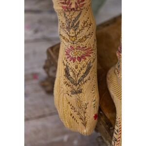 Magnolia Pearl Floral Embroidered Knit Socks Yellow Boho Artisan NWT