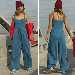 Free People Movement Inbound Onsie Jumpsuit Blue Stretch Cotton Size Medium NWT