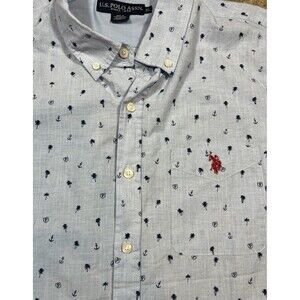 US Polo Assn. Short Sleeve Button Down Light Blue Palm Trees Shirt Mens Size XL