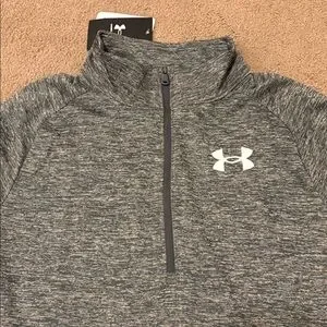Brand new with tags! Youth size XL. Comfortable heathered gray pullover with quarter-zip. Features Under Armour logo.