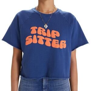 MOTHER The Loafer Fray Crop Graphic Sweatshirt in Trip Sitter