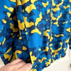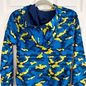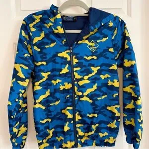 Cub Scout BSA Scouting Blue Yellow Camo Hooded Windbreaker Jacket Coat
