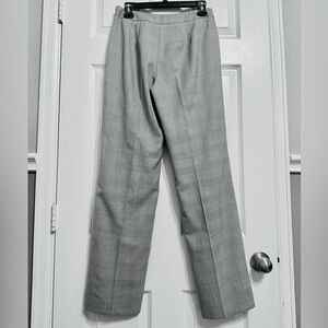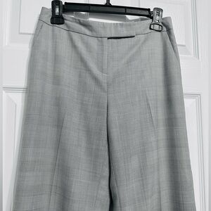 Pre-owned Ann Taylor LOFT slacks size 2 in very good condition! Fully lined. Grey color with a very subtle plaid design. Button clasp and zipper at front, 2 pockets. Only flaw is a tiny dark mark on front left part of pants, not noticeable. These are in great shape! 90% wool. 40” top to bottom, 28 1/2” waist, 31” inseam. Smoke free.