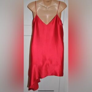 CINQ A SEPT size M, Romeo Top in Camilla Red. 100% Silk. Ruffle down the left side