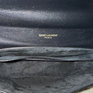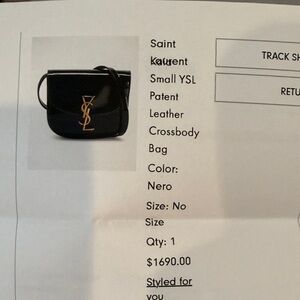 Beautiful Saint Laurent small YSL Patent Leather crossbody bag in black. Adjustable strap. Come with storage bag. In excellent condition, like new. 6” height, 6.5” length, 1.75” width, drops 21”.