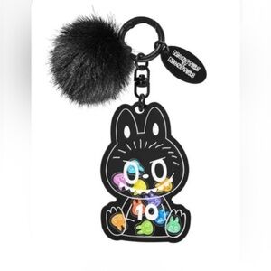 Features moveable, shakable colorful mini Labubu heads inside clear acrylic keychain. Approximately 4in tall and 1/4in thick.