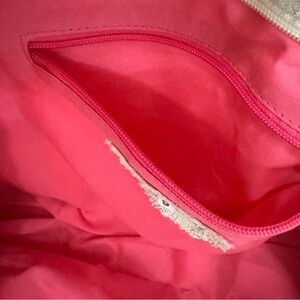 *fully lined Pink interior with a back wall zip pocket, plus a side pocket for phone, and another pocket for keys or glasses
