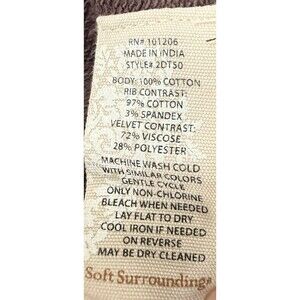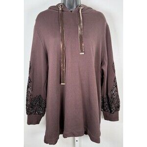 Soft Surroundings L Brown Hooded Tunic Length Velvet Trim Embellished Sleeves