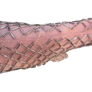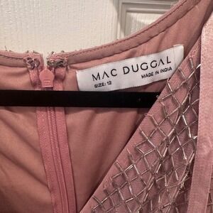 Mac Duggal Beaded Lattice Gown 93787 Rose Pink V-Neck Maxi Dress Womens 12 NEW