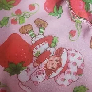 Features: Smells like Strawberries, gold colored metal hardware and zippers, adjustable/removable strap, interior lining has an all over Strawberry Shortcake print.