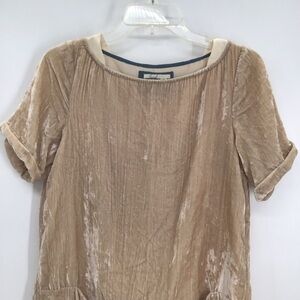 Anthropologie Floreat Crinkle Velvet Dress Casual Career Champagne Size XS