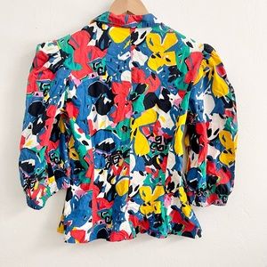 Vintage Guy LaRoche Paris Peplum Colorful Blazer Pop Art Graffiti 80s 90s Top