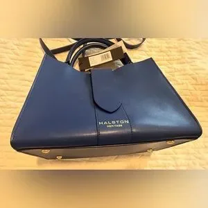 Halston Heritage Navy Blue Italian Leather Tote. NWT