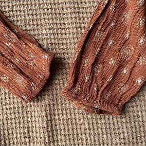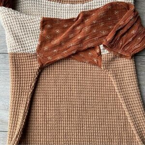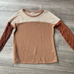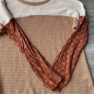 Lemon Tree Patchwork Earth Tone Long Sleeve Top