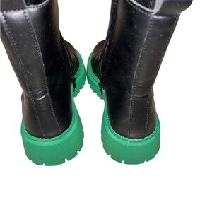 Elevate your wardrobe with these sleek black and green ankle boots. Perfect for adding a pop of color to any outfit.