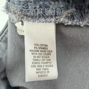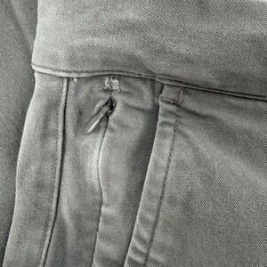 Bonobos stretch washed chinos in a versatile grey hue offer a comfortable, tailored fit with a hint of spandex for ease of movement. These pants feature a classic flat-front design, button-through back welt pockets, and a unique hidden zipper pocket at the side for secure storage. The interior waistband is lined with a subtle floral pattern, adding a refined touch to these everyday essentials. Note that there is some minor fraying near the hidden zipper pocket.