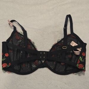 Victoria's Secret Black Bra with Red Cherry Embroidery
