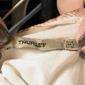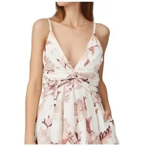 Go with the flow. Romantic high-low ruffles elegantly balance the dramatic v-neck and front knot on this dreamy dress by Thurley.