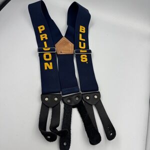 Prison Blues Suspenders OS Navy Blue Yellow Logo Y-Back Leather Button Ends Work