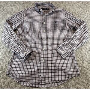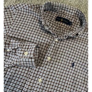 Polo Ralph Lauren Mens Button Up Shirt Blue Brown Plaid Long Sleeve XL Pony