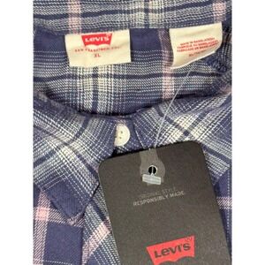 NWT Levis Mens XL Relaxed Fit Plaid Button Up Shirt Blue Pink Cotton Viscose