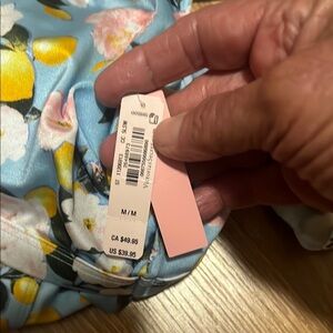 Stylish bikini top with floral and lemon print. Features a unique one-shoulder design. Perfect for a chic beach look.