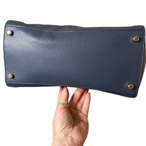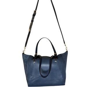 Coach Pebbled Leather & Suede Zip Top Tote F34217 – Blue – Gold Hardware – Crossbody Strap – EUC