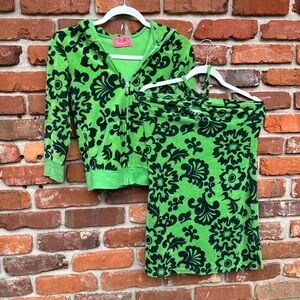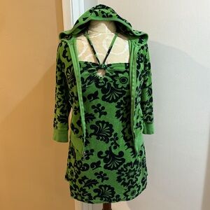 Juicy Couture Vtg 2 Pc Navy Green Terry Cloth Dress Cover Up Zip Track Jacket P