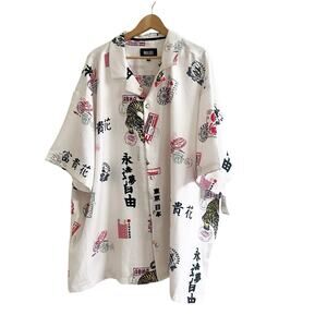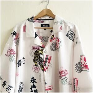 MALIBU Drill Clothing Shirt Mens 2XL Tiger Eye Asian Button Textured Y2K NWT