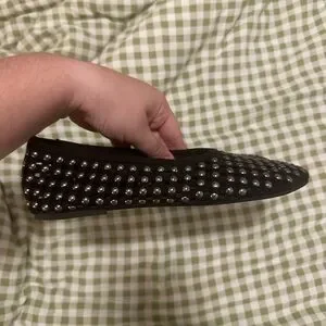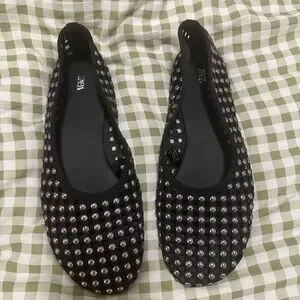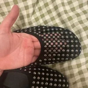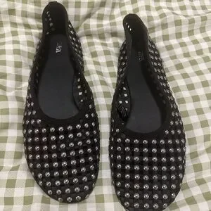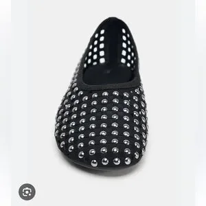 Zara Black Studded Mesh Mary Jane Ballet Flat Shoes Womens Size 37