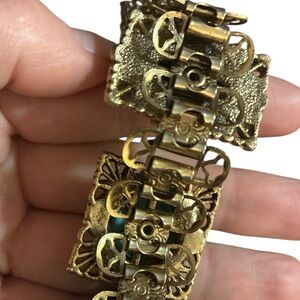 Vintage Book Chain Faux Turquoise & Onyx Bracelet