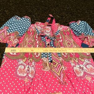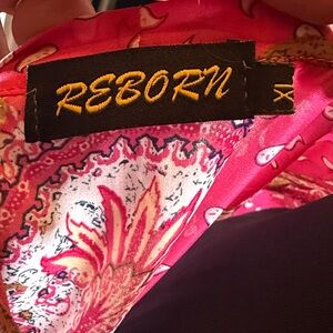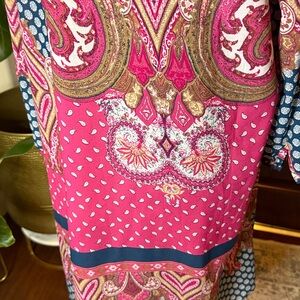 Reborn sheer pink and blue paisley print, bohemian-style tunic size XL