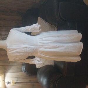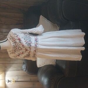 White Midi Dress with Floral Embroidery Size M
