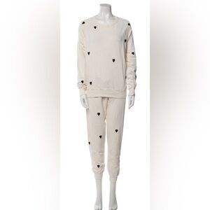 THE GREAT. Cream and Black embroidery Heart Pantsuit. S( 2pc)