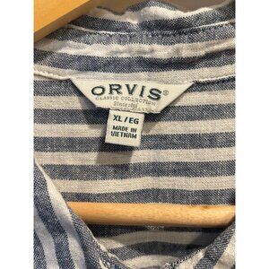 Orvis XL Linen Blend Striped Button Shirt Blue White Relaxed Fit
