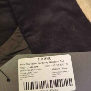 Disturbia mire sleeveless corduroy waistcoat top size 2 new