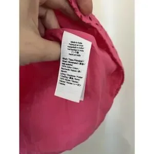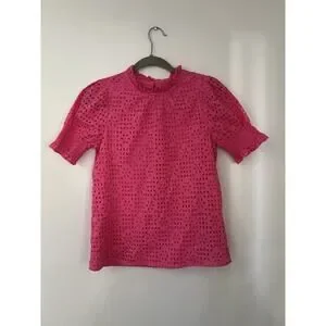 J.CREW Hot Pink Eyelet Smocked Short Sleeve Blouse Size xxs Ruffle 100% Cotton