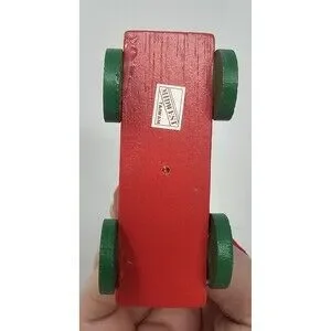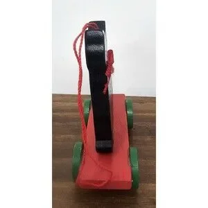 Vtg Midwest Wood Black Cat On Red Cart Christmas Ornament Shelf Sitter Pull Toy