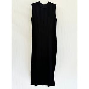AYR The Weekender Ribbed Midi Dress Black Sleeveless Knit Size Small LBD