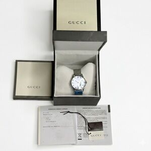 Includes original box, manual, and authenticity papers. This item is Eligible for Poshmark Authentication, ensuring a secure and verified luxury purchase. The Gucci G-Timeless watch offers luxury with its diamond-adorned mother of pearl dial, ensuring timeless elegance.