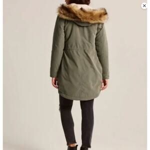 Abercrombie & Fitch Olive Green Sherpa Lined Military Parka Coat Sherpa Lined Women's Small Gorpcore Utility Faux Fur Removable Hood Lining