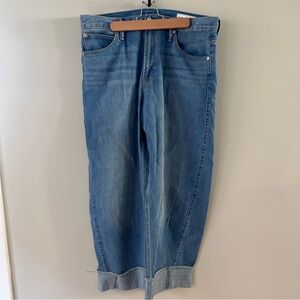 Fit:A full-length barrel jean that's fitted at the waist with a relaxed leg and tapered ankle.
